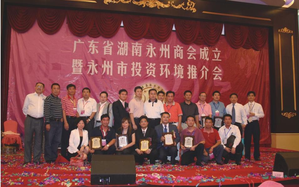 2007年10月24日,广东省湖南永州商会正式成 立,我公司成为首届商会会员单位,并且,我 公司董事长蒋辉先生被推选为商会副秘书长。 图为商会主要领导成员合影